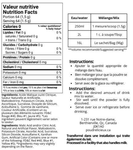 Que ce soit pour créer des slush onctueux dans ta machine ou simplement pour préparer une boisson glacée ultra rafraîchissante au mélangeur, ces poudres sont simples à utiliser et délicieuses à chaque gorgée!